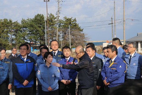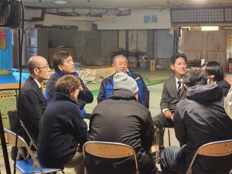馳知事が視察のために町野町を訪れ、市長も同行しました。視察の中では地域住民との意見交換が行われ、現状の課題や今後の復興について話し合いが行われました。